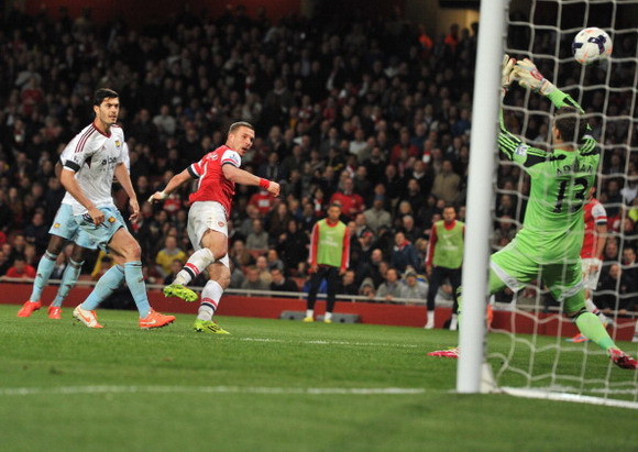 Những phút tiếp theo, Arsenal chiếm thế áp đảo hoàn toàn ở trên sân. Lần lượt Podolski rồi Cazorla ra sức bắn phá khung thành của West Ham. Điều gì đến cũng đã phải đến, tỉ số của trận đấu đã được ấn định ở phút thứ 78. Giroud, Ramsey và Podolski phối hợp đầy ngẫu hứng để đưa bóng vào vòng cấm của đối phương, rồi kết thúc bằng cú dứt điểm tung nóc lưới của tiền đạo người Đức.