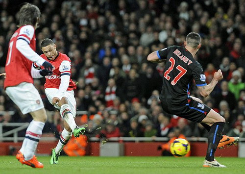 Trở lại sau giờ nghỉ, có lẽ những điều chỉnh về chiến thuật trong phòng thay đồ đã biến Arsenal trở thành một đội bóng khác. Những đợt tấn công của các học trò HLV Wenger đã trở nên nhịp nhàng và thanh thoát hơn. Phút 47, Cazorla đã tung ra đường chuyền bổng hoàn hảo, vừa đúng đà băng lên của Alex Oxlade-Chamberlain. Sau một nhịp khống chế bóng gọn gàng, tiền vệ người Anh nhẹ nhàng tâng bóng qua đầu thủ môn, phá vỡ thế bế tắc của trận đấu.