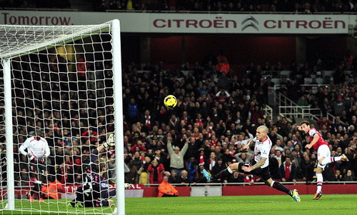 Bàn thua này đã động chạm đến lòng tự ái của các cầu thủ Liverpool khi họ tràn lên tấn công dồn dập về phía đội chủ nhà. Phút 73, Suarez có tình huống uy hiếp khung thành Szczesny lần đầu tiên, nhưng tình huống dứt điểm của tiền đạo người Uruguay đưa bóng đi trúng cột dọc.