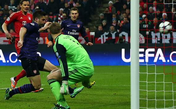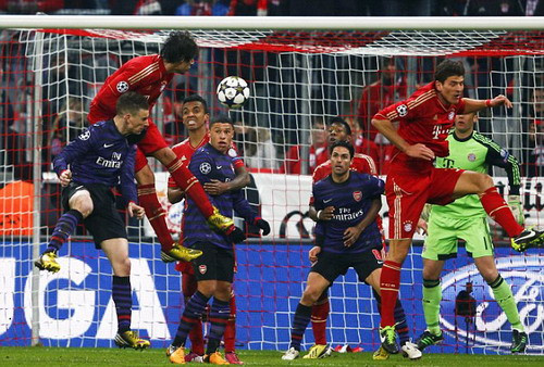 Tấn công nhiều mà không ghi được bàn, Bayern phải trả giá. Phút 85, từ tình huống đá phạt góc, trung vệ Koscielny đánh đầu nâng tỉ số lên 2-0 khiến những phút còn lại trở nên vô cùng kịch tính. Tuy nhiên các cầu thủ Bayern Munich đã bảo vệ thành công khung thành không bị thủng lưới thêm và giành quyền vào tứ kết với lợi thế về bàn thắng trên sân khách dù tổng tỷ số hoà 3 -3 sau 2 lượt trận.