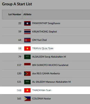 Kim Tuấn và Quốc Toàn sẽ so tài cùng 8 đối thủ khác tại nội dung 56kg nam