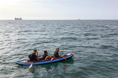 Người di cư trong hành trình vượt eo biển Manche từ Pháp tới Anh ở ngoài khơi bờ biển Calais, Pháp ngày 4/8/2018. (Ảnh: AFP/TTXVN)