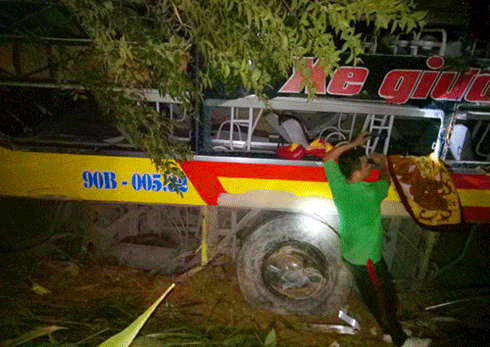 Xe khách lao xuống vực.