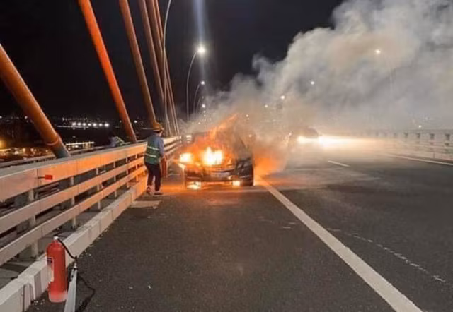Vào khoảng 20h ngày 30-6, xe ô tô Mercedes BKS 30A-905.32 do lái xe L.X.H. (ở TP Hà Nội) điều khiển đang lưu thông trên cao tốc Hạ Long - Hải Phòng tới khu vực giữa cầu Bạch Đằng thì bất ngờ bốc cháy dữ dội.