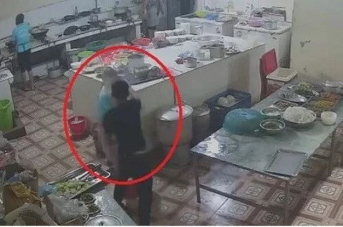 Nguyễn Văn Cảnh cầm cốc axít hắt vào mặt chị Bùi tại khu vực bếp của trạm dừng nghỉ