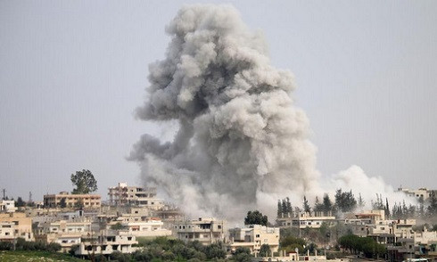 Cột khói sau đòn không kích nhằm vào thành trì Idlib hồi năm 2017. (Ảnh: AFP)