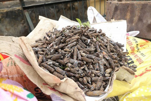 Theo cảnh sát, số đầu đạn này anh Doanh thu gom trong nhiều lần khi chúng lẫn trong các phế liệu khác. Vật liệu nổ không bán được nên anh tập kết thành đống to tại vườn từ nhiều tháng nay.