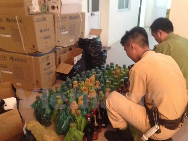 Qua kiểm tra, trên xe có 8 thùng giấy carton chứa 120 chai rượu Martell và 1 chai rượu Chivas 12, do nước ngoài sản xuất, trên nắp các chai rượu đều không dán tem nhập khẩu theo quy định của pháp luật và lái xe không xuất trình được hóa đơn chứng từ chứng minh nguồn gốc xuất xứ, nên toàn bộ số hàng hóa đã được chuyển đến Đội Quản lý thị trường số 5 (Chi Cục Quản lý thị trường Hà Nội) để xử lý theo thẩm quyền.