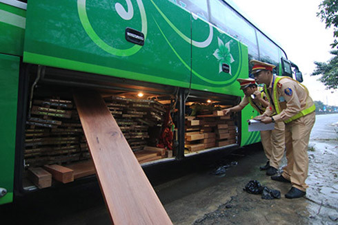 * Phát hiện hai xe khách chất kín gỗ lậu dưới gầm