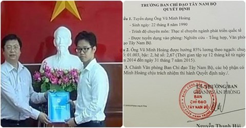 * Liên quan đến việc tuyển dụng và bổ nhiệm “thần tốc” đối với ông Vũ Minh Hoàng (26 tuổi, quê Bắc Ninh) được truyền thông đăng tải những ngày qua, chiều 11-12, nguồn tin từ Ban chỉ đạo Tây Nam bộ cho biết, thực hiện chỉ đạo của Phó Thủ tướng Vương Đình Huệ, Thường trực Ban đã quyết định thành lập tổ công tác để kiểm tra toàn bộ quy trình tuyển dụng, bổ nhiệm cán bộ này.