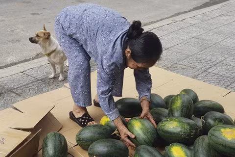 Người phụ nữ bỏ tiền túi giải cứu 1 tấn dưa hấu rồi phát miễn phí