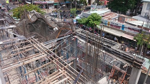 * Liên quan đến vụ sập giàn giáo xây dựng hồ bơi tại công trình nhà ở Kim Minh (TP.Vũng Tàu, Bà Rịa - Vũng Tàu) làm 2 người chết, chiều 11-6, tổ công tác của Bộ Xây dựng đã đến hiện trường tìm hiểu nguyên nhân vụ tai nạn.