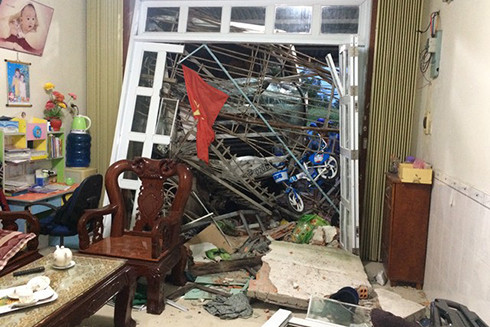 Hiện trường đổ nát của vụ xe tải mất lái lao vào nhà dân