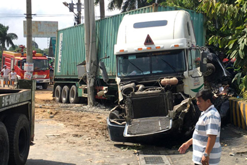 Sáng 14-6, xe đầu kéo chở thùng container 40 feet chạy trên quốc lộ 22, hướng từ TP HCM về Tây Ninh. Khi đến cổng chào Tây Ninh, giáp ranh huyện Củ Chi (TP HCM) và huyện Trảng Bàng (Tây Ninh), xe bất ngờ lao sang phần đường ngược lại, đâm vào ôtô 4 chỗ.