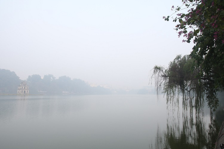 Sáng 14-12, khu vực Hồ Hoàn Kiếm dày đặc sương mù