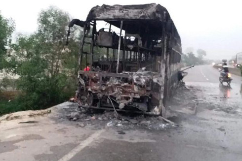 *Xe giường nằm cháy trơ khung, 30 hành khách may mắn thoát nạn