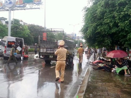 Tai nạn xảy ra lúc trời mưa, đường trơn. Nhiều người bị thương được đưa vào lề đường, nằm la liệt. (Ảnh: Zing)