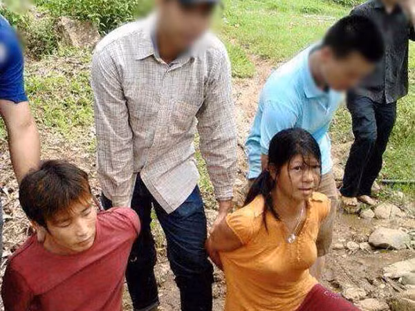 Đặng Văn Hùng và Nguyễn Thị Hán khi bị bắt ở địa phận xã Khánh Hòa (Lục Yên)