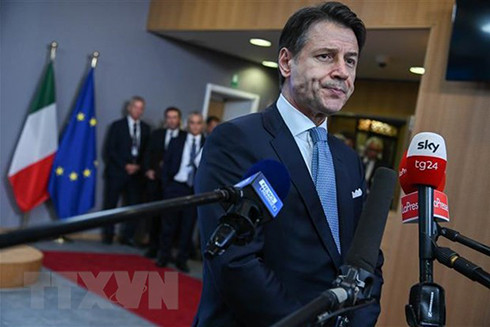 Thủ tướng Italy Giuseppe Conte tại cuộc họp báo ở Brussels, Bỉ. (Ảnh: THX/TTXVN)
