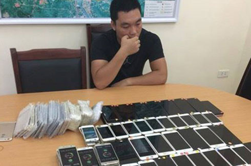 Đối tượng cùng tang vật điện thoại nhập lậu.