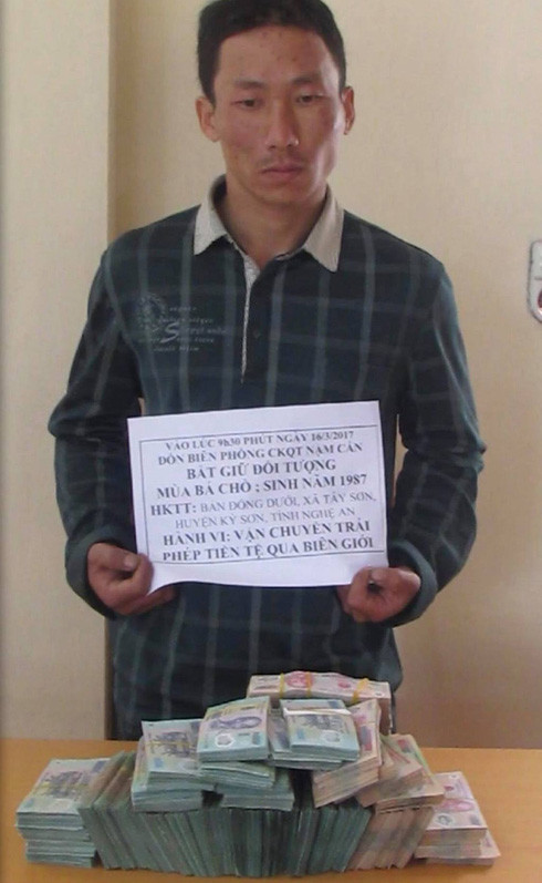 *Chiều 16-3, Bộ đội Biên phòng Nghệ An cho biết, đơn vị vừa phát hiện và bắt giữ đối tượng Mùa Bá Chò (SN 1987, trú tại huyện Kỳ Sơn) khi mang theo bì tiền đang cố vượt biên theo đường mòn sang Lào.