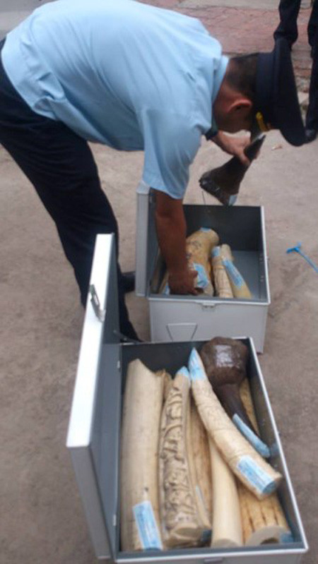 *Chiều 16-4, Đội Kiểm soát Cục Hải quan Hà Nội làm nhiệm vụ đã phát hiện dấu hiệu nghi vấn của lô hàng gồm 2 kiện trên chuyến bay số VN 18, từ Pháp về sân bay quốc tế Nội Bài, Hà Nội. Chủ nhân đứng tên người nhận hàng là Công ty Cổ phần chuyển phát nhanh Bưu điện (EMS quốc tế Sân bay quốc tế Nội Bài). Qua kiểm tra, cơ quan hải quan phát hiện lô hàng trên gồm 65,42 kg sản phẩm động vật hoang dã nghi là sừng tê giác và ngà voi. Ngay lập tức, cơ quan chức năng niêm phong toàn bộ lô hàng, tiến hành các thủ tục đem mẫu vật đi giám định.