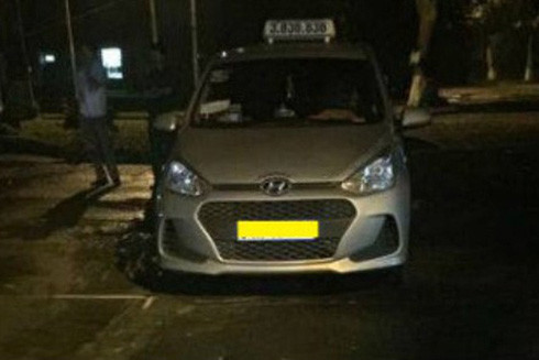 Chiếc xe taxi chở Thọ "sứt" khi bị bắt giữ.
