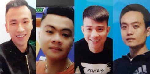 Nghi phạm Lập (thứ 2, từ trái sang) bị bắt giữ sau 10 ngày lẩn trốn. Cảnh sát đang ráo riết truy tìm ba nghi can còn lại