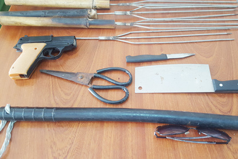 Dùi cui, súng nhựa và hung khí được tìm thấy tại phòng trọ của Út Lọt