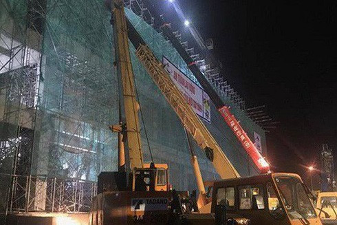 Tối 22-10, giàn giáo thi công tầng 4 của Trung tâm văn hóa Xứ Đông đổ sập đã vùi lấp năm công nhân.