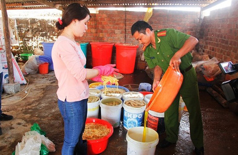 *Ngày 23-1, khi tiến hành kiểm tra cơ sở chế biến măng tươi tại khối Tân Hòa, phường Vinh Tân, TP Vinh, lực lượng chức năng tỉnh Nghệ An phát hiện 18 tấn măng tươi và 2 hộp bột màu trắng dùng để tẩy sạch măng.