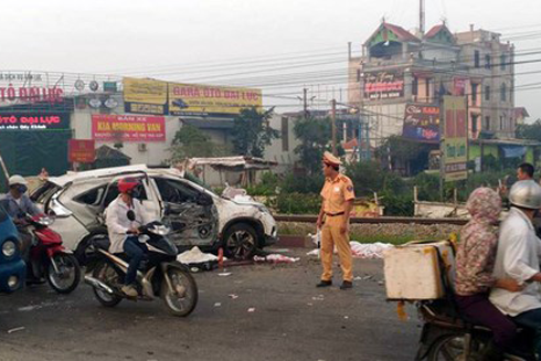 * Sáng 24-10, tại tuyến đường sắt ngang qua thôn Văn Giáp, xã Văn Bình, huyện Thường Tín, Hà Nội, một chiếc ô tô hiệu Honda CRV chở 7 người, gồm 3 nữ, 4 nam khi băng qua đường tàu đúng lúc tàu hỏa chạy đến, đã bị tông ngang xe.