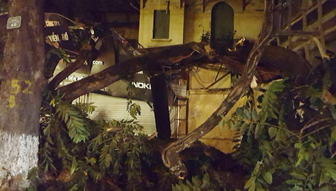 Ngôi nhà số 24 ngoài diện tích ở, chủ nhà còn cho thuê làm cửa hàng điện thoại. Hai cành lớn bị gãy đè lên mái cửa hàng điện thoại, gây hư hỏng nặng. Phần cây bị đổ còn vắt ngang ra phía vỉa hè, rất may thời điểm đó không có người qua lại.