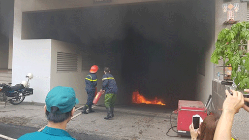 Hiện trường vụ cháy toàn nhà chung cư Carina Plaza.