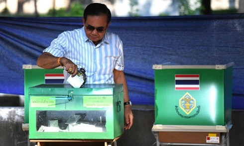 Thủ tướng Prayut Chan-o-cha bỏ phiếu sáng 24/3. (Ảnh: AFP)