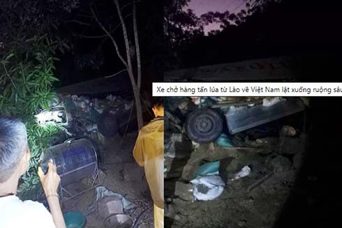 * Xe chở hàng tấn lúa từ Lào về Việt Nam lật xuống ruộng sâu, tìm thấy một thi thể