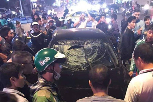 Khoảng 20h ngày 25/12, tài xế lái ôtô 5 chỗ trên đường Trần Duy Hưng (Cầu Giấy, Hà Nội) theo hướng về quận Đống Đa, khi đến chân cầu vượt Trần Duy Hưng - Nguyễn Chí Thanh thì húc vào chân cầu, sau đó đâm liên tiếp hai xe máy và một taxi. Xe chỉ dừng lại khi hai lốp trước và lốp sau bên trái bị thủng.