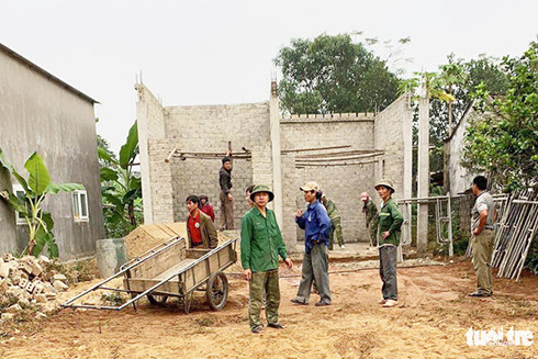 Hàng xóm giúp vợ chồng ông Linh dựng căn nhà do hoàn cảnh gia đình rất khó khăn