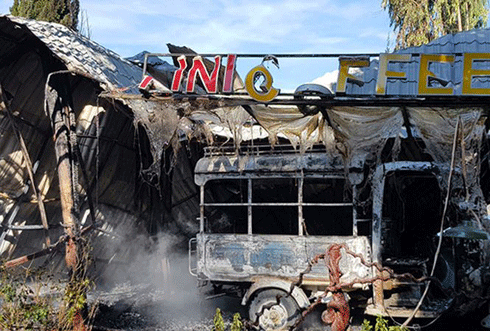 *Khoảng 6 giờ sáng nay (28-4), quán cà phê PiNi trên đường Phượng Tím, TP Đà Lạt bị cháy. Do quán làm bằng vật liệu dễ cháy, sàn bằng gỗ nên ngọn lửa nhanh chóng bao trùm toàn bộ khu vực nhà hàng.