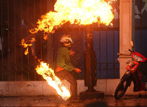 * CATP Biên Hòa, Đồng Nai cho biết, đang xác minh một đoạn video dài hơn 1 phút ghi lại cảnh một nhóm thanh niên ném bom xăng, cầm mã tấu gây náo loạn cả khu phố 2, P.Tam Hòa đêm ngày 1-6. Đáng nói, các đối tượng trên đã sử dụng bom xăng ném ra giữa phố, ngay trước cửa nhà người dân, khiến nhiều người hoang mang, lo lắng.