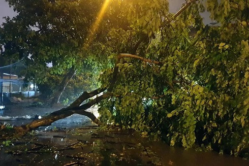 Bão làm đường phố ngập, cây đổ tại TP Móng Cái tối 2/8. (Ảnh: Minh Cương/VnExpress)