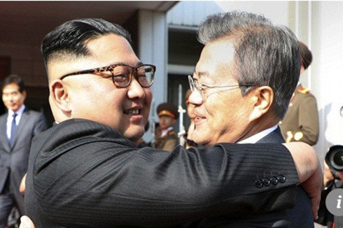 Tổng thống Hàn Quốc Moon Jae-in và nhà lãnh đạo Triều Tiên Kim Jong-un trong cuộc Hội nghị Thượng đỉnh đầu tiên