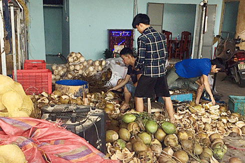 Một công ty chuyên cung cấp dừa cho các khách sạn, resort bị bắt quả tang tẩy trắng dừa bằng hóa chất.