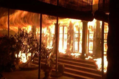 Ngôi chùa bị cháy.