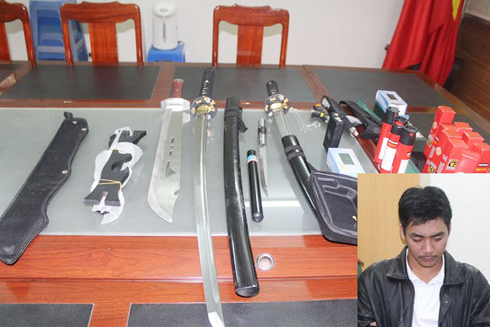 Trước đó, ngày 4-12, lực lượng chức năng phát hiện 1 đối tượng đi trên xe gắn máy có biểu hiện nghi vấn. Qua kiểm tra, lực lượng chức năng phát hiện trong người đối tượng giấu thanh kiếm dài khoảng 1m.
