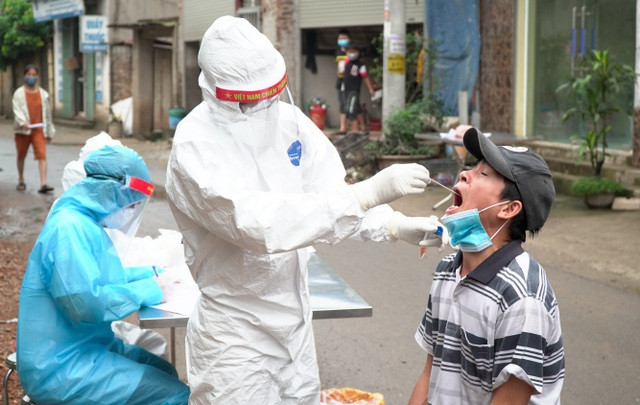 Người dân ở thông Đông Cứu được lấy mẫu xét nghiệm SARS-CoV-2