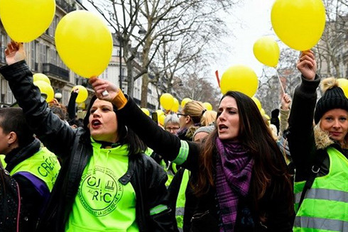 Ngày 6/1, hàng trăm phụ nữ Pháp đã tuần hành tại nhiều thành phố nhằm "giành lại" phong trào Áo vàng từ những nhóm biểu tình bạo động.