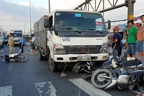 * Ôtô tải tông liên tiếp 5 xe máy ở giao lộ Sài Gòn