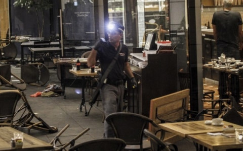 Khung cảnh tan hoang tại nơi xảy ra vụ xả súng kinh hoàng ở Tel Aviv (Ảnh AP)