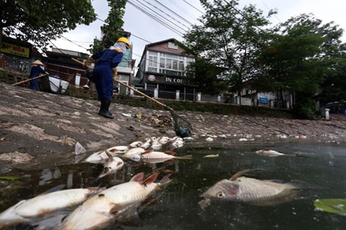 Cá chết nổi trắng hồ Hoàng Cầu, quận Đống Đa, Hà Nội